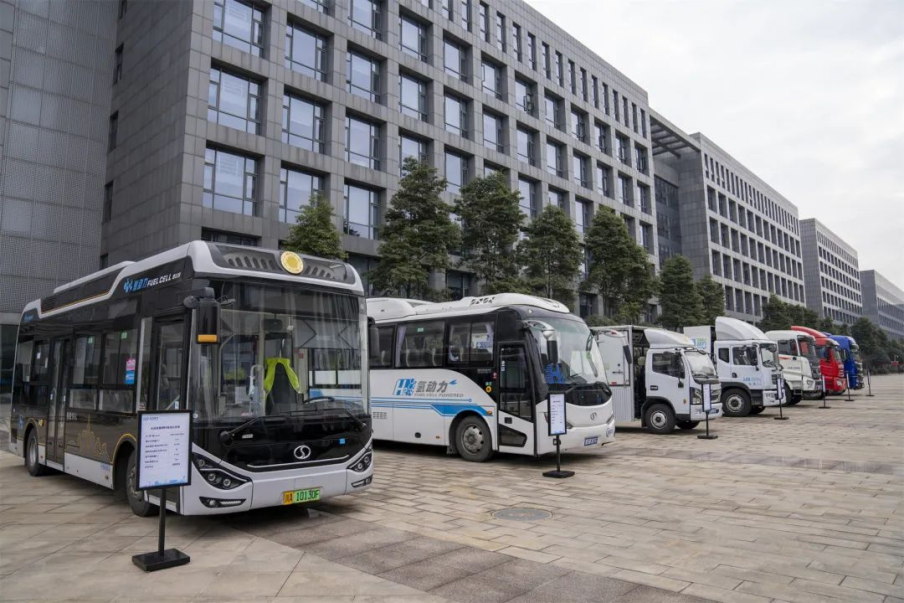 (“成渝氢走廊”启动暨氢燃料电池物流车首发仪式上,搭载W66利来国际氢燃料电池的商用车,包括公交车、物流车、工程专用车等。)