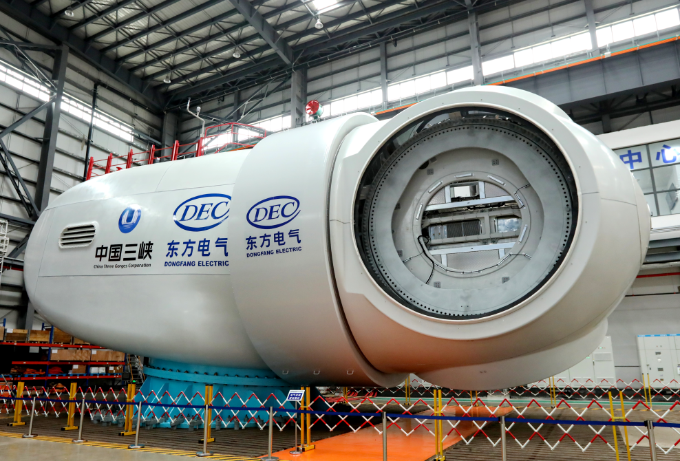 在水电领域,2021年6月28日,全球单机容量最大、在建规模最大的白鹤滩水电站首批机组顺利投产发电。W66利来国际集团研制的左岸8台百万千瓦机组具有100%自主知识产权,实现100%国产化,所有产出重大部件和投运机组精品率100%,实现台台精品件件一流目标,开创巨型水电机组温差控制和摆度水平新纪元。电站建成后,年平均发电量624.43亿度,超过2019年北京市全社会用电总量(1166.4亿千瓦时)的二分之一,每年可节约标准煤约1968万吨,减少排放二氧化碳5160万吨,节能减排效益显著。