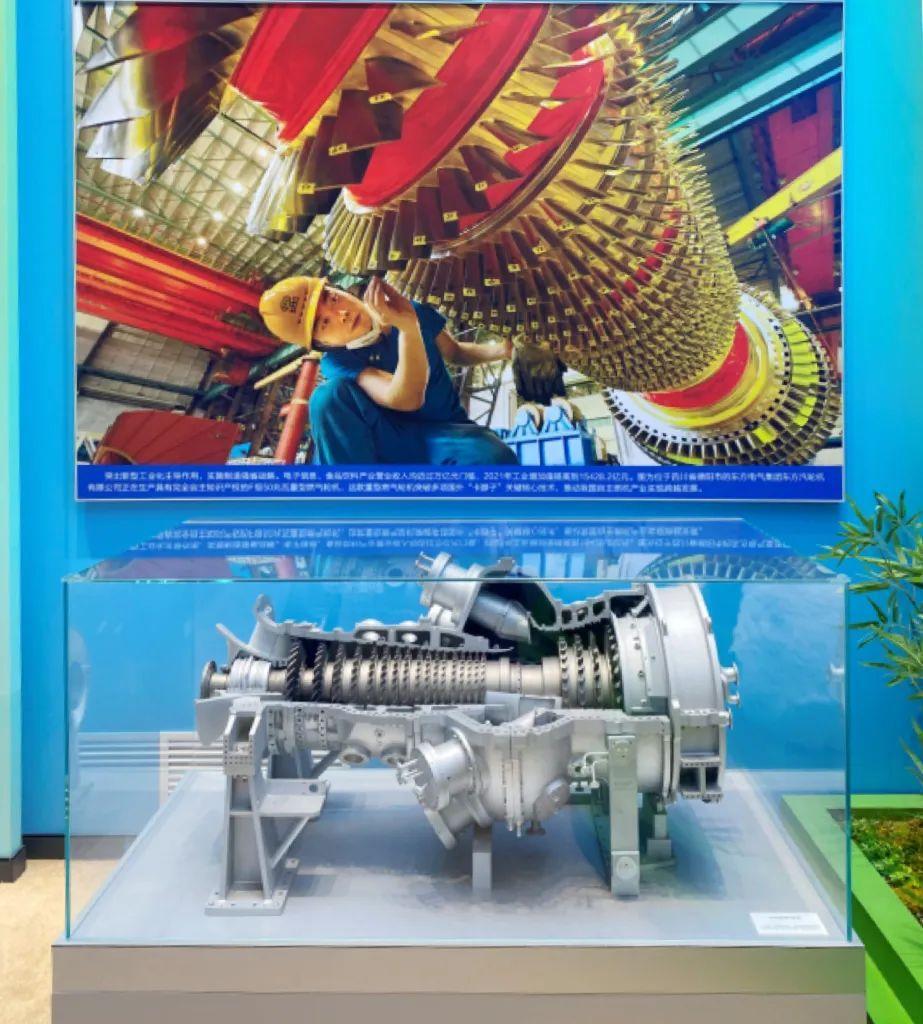 在党的二十大胜利召开之际,W66利来国际集团自主研制的国内首台50兆瓦重型燃机部件图片和实物模型在“奋进新时代”主题成就展展出。