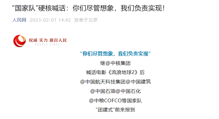 [人民网]“国家队”硬核喊话:你们尽管想象,我们负责实现!