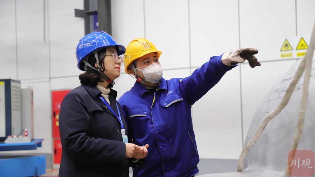 曹天兰在车间了解焊接工作开展情况。王攀 摄