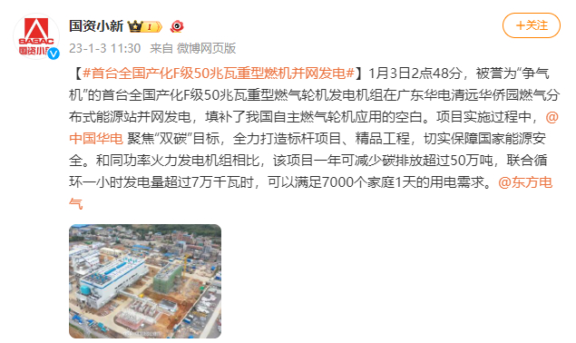 [国资小新]#首台全国产化F级50兆瓦重型燃机并网发电#