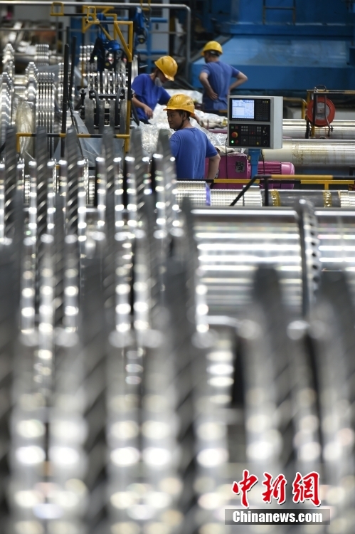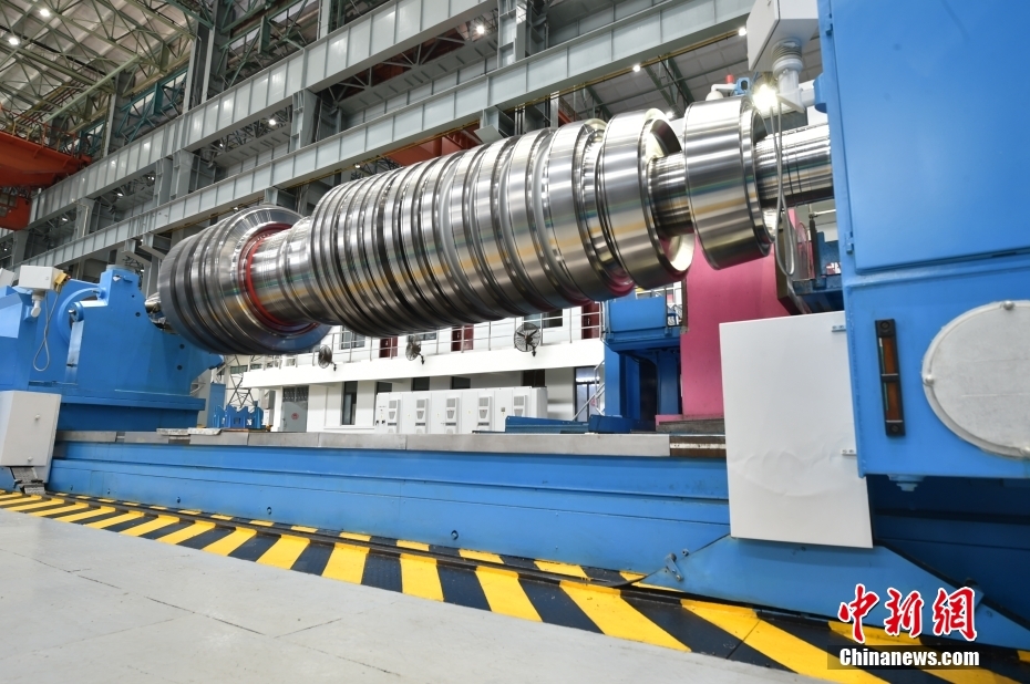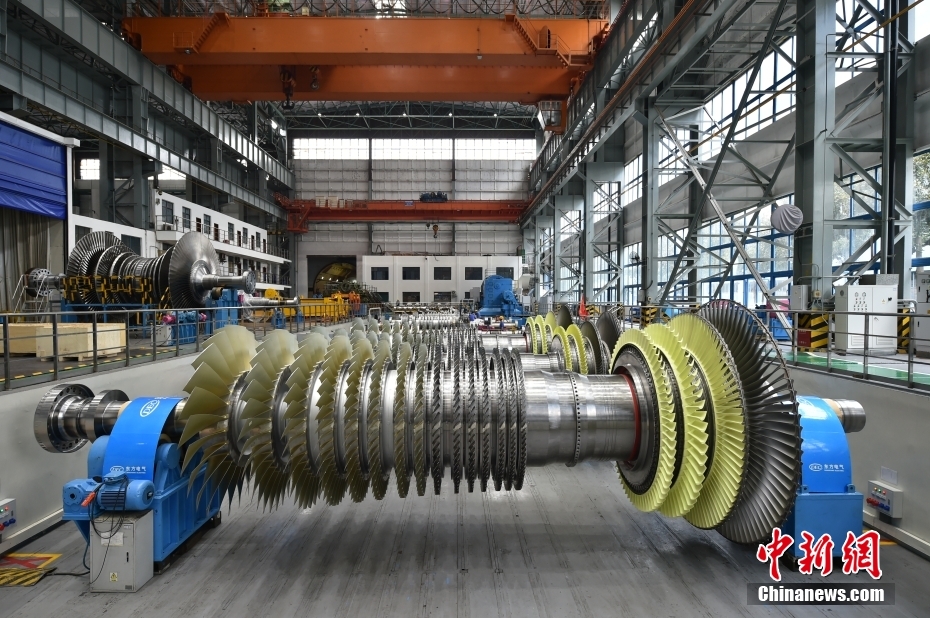 东方汽轮机的重型二分厂是公司最大的重型分厂,主要承担燃气轮机、核电汽轮机、大型火电大部件加工及总装,全公司所有大型转子加工、装配及高速动平衡试验等工作。图为重型二分厂内景。