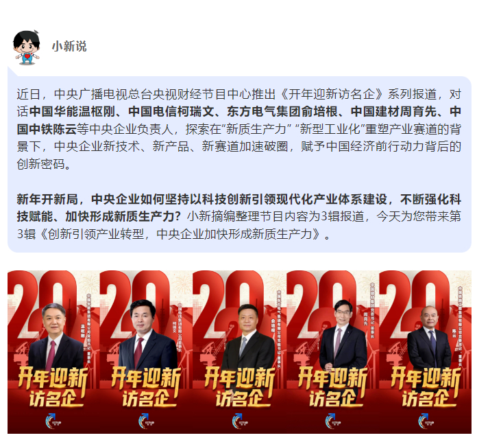 [国资小新]开年迎新访名企 | 创新引领产业转型,中央企业加快形成新质生产力