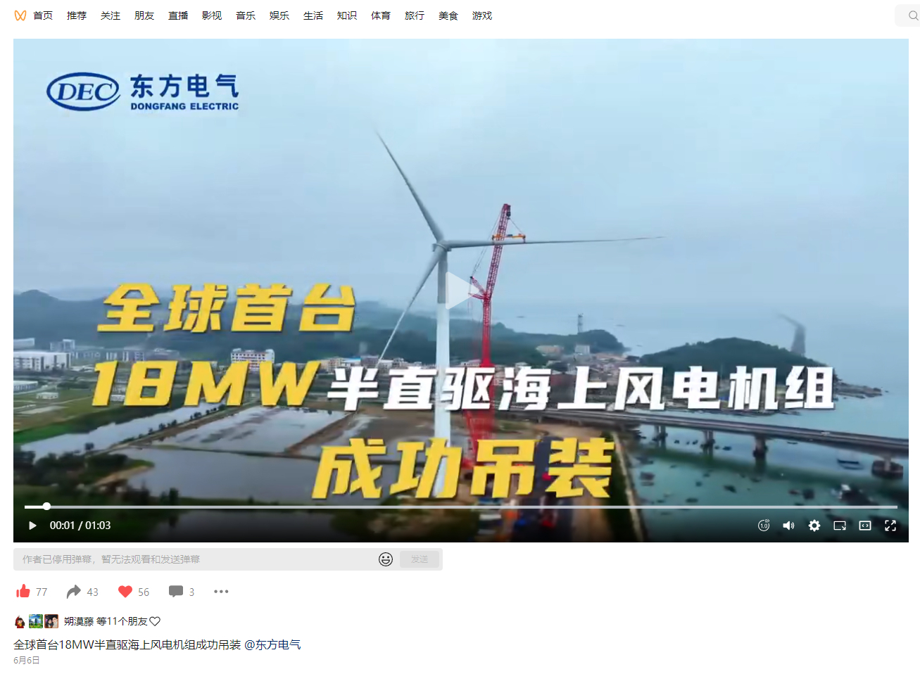 [国资小新]全球首台18MW半直驱海上风电机组成功吊装