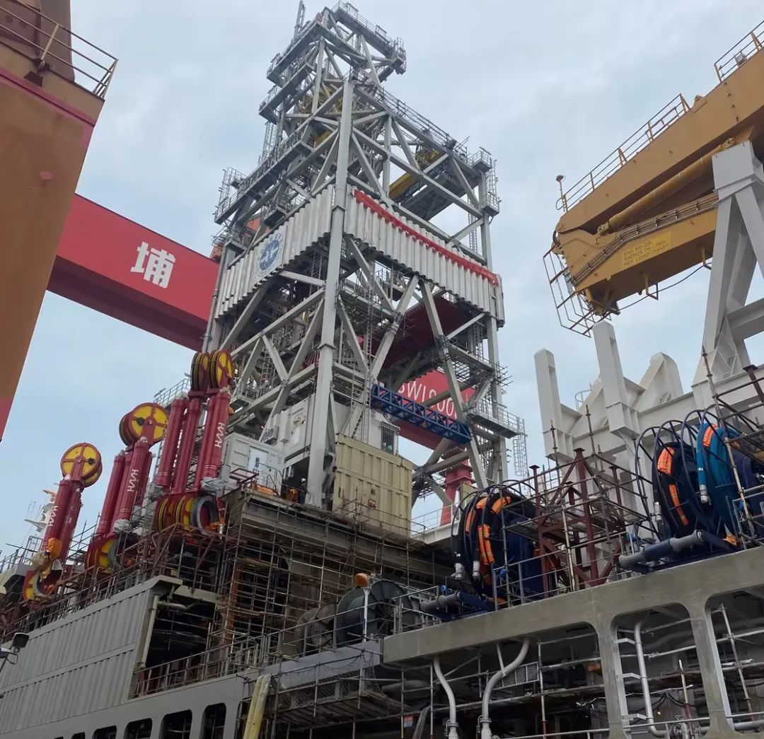 此外,东方宏华还建造了“梦想”号海洋动态井架和水下设备移运系统,攻克复杂桁架的节点设计技术及大型钢构精度控制技术,井架一次性吊装到位,掌握了创新型动态井架的设计建造能力。