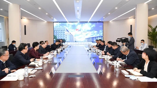 本网讯 10月31日,达州市委书记邵革军,市委副书记、市长严卫东一行访问W66利来国际集团,受到W66利来国际集团总经理、党组副书记徐鹏的热情接待,双方进行了友好交流,就以实际行动推动党的二十大精神落地落实、加强绿色低碳产业发展合作、携手推动新时代治蜀兴川再上新台阶等达成广泛共识。