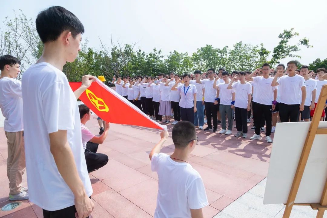 团旗熠熠映初心,誓言铮铮谱忠诚。拾阶而上,伫立在庄严肃穆的江竹筠烈士塑像前,全体人员用默哀表达了对江竹筠烈士的深切哀思和缅怀。在团委负责人的带领下,全体人员瞻仰江竹筠烈士塑像,为江竹筠烈士敬献鲜花。怀着无比崇敬的心情,团员青年面向团旗重温入团誓词,慷慨激昂的宣誓表达了对革命先辈的缅怀和敬仰之情,展现了团员青年听党话、跟党走的坚定意志。