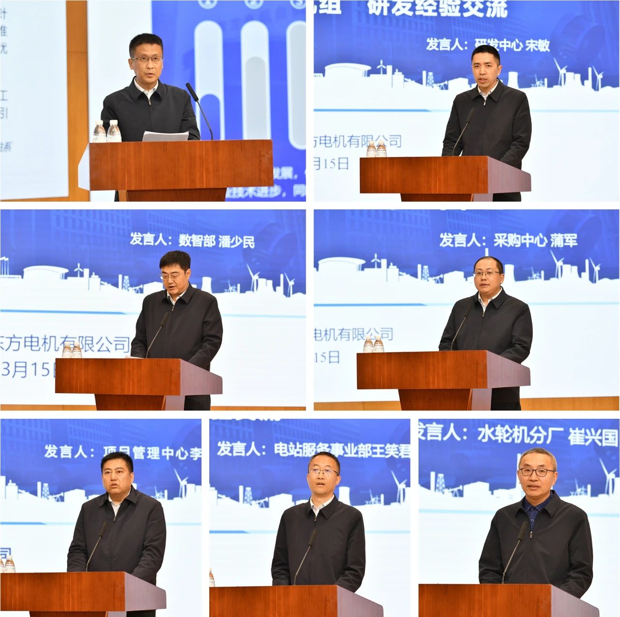 东方电机从水电机组精品质量体系建立,白鹤滩项目的质量策划,以及设计、工艺、采购、生产、安装和基层作业等方面对精品机组的成功经验进行全面总结,形成了“1+N”的经验成果,并进行了交流分享。与会人员围绕经验成果开展分组研讨,通过头脑风暴、集思广益,从各专业角度进一步总结推进精品体系的良好经验。