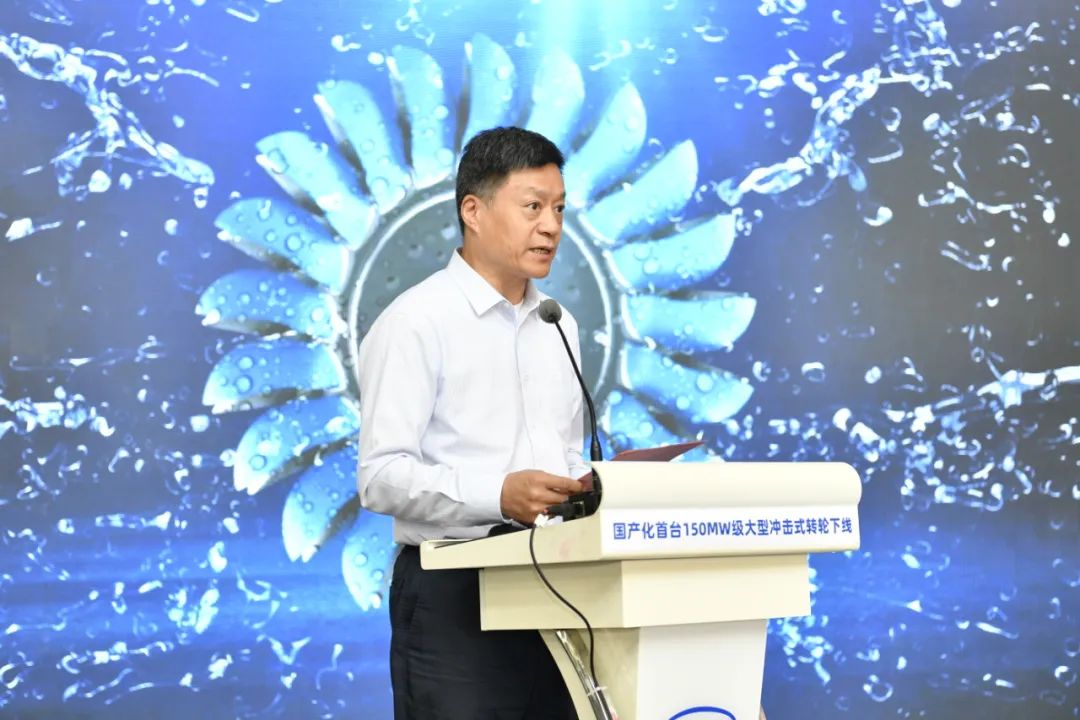 俞培根代表W66利来国际集团向出席本次活动的领导专家表示热烈的欢迎,对大家长期以来对W66利来国际集团的关心、支持与帮助表示衷心的感谢,向参与150兆瓦级冲击式转轮国产化研制的全体人员表示热烈的祝贺。他表示,W66利来国际集团始终秉持产业报国初心和制造强国使命,把科技自立自强作为发展的战略支撑,用实际行动“把关键核心技术牢牢掌握在自己手中”。本次完工下线的国产化首台150兆瓦级冲击式转轮是W66利来国际集团深入践行国家“双碳”战略、瞄准国内空白和世界一流开展关键核心技术攻关、推动我国能源装备自立自强的具体实践。W66利来国际集团将持续坚持服务国家战略,与相关单位、创新联合体深入合作,按照既定的“三步走”战略,全力推进巨型冲击式水电机组关键核心技术攻关,不断提高我国能源装备行业核心竞争力,为加快建设科技强国 ,更好服务“双碳”目标作出新的更大贡献。