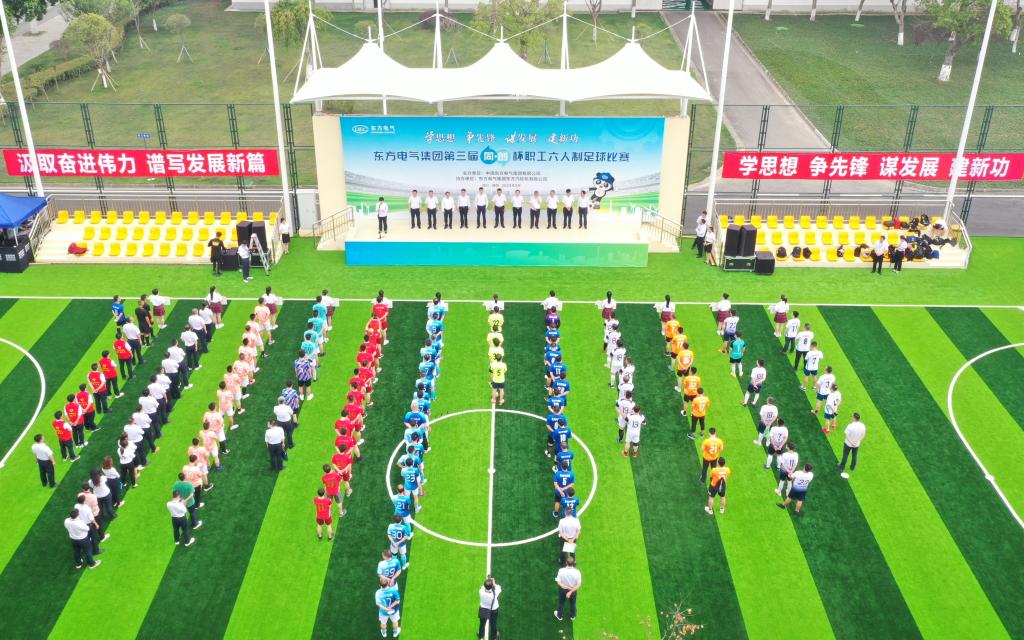 本网讯 为深入开展2023年“学思想、争先锋、谋发展、建新功”群众性主题宣传教育活动,进一步践行“同·创”文化、丰富职工文化生活、展示职工精神风貌,为实施领先战略、加快建设世界一流企业凝聚强大合力。5月18日至21日,集团公司第三届“同·创”杯职工足球比赛在东方汽轮机职工运动公园成功举办。集团公司党组副书记、董事宋致远出席开幕式,并为首场比赛开球。