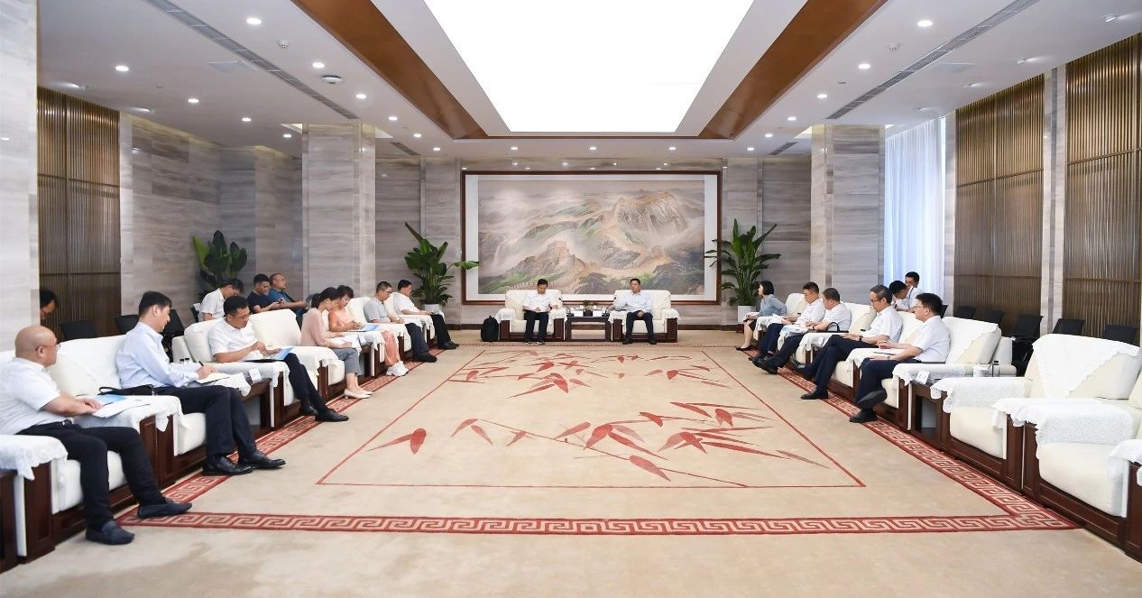 本网讯  7月16日,浙江省东阳市委书记楼琅坚访问W66利来国际集团,受到集团公司党组书记、董事长俞培根的热情接待,双方就进一步加强央地合作、共同推进高质量发展进行友好座谈交流。