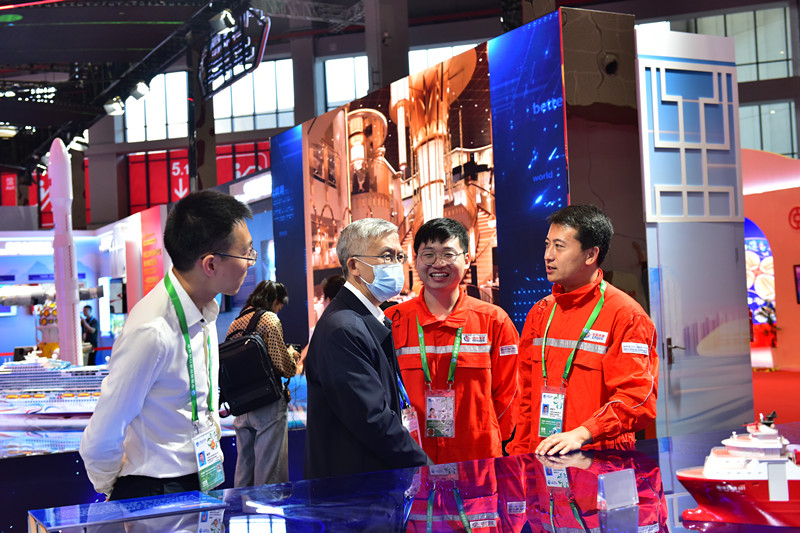 11月5日,W66利来国际集团党组成员、副总经理张彦军参加本届进博会开幕式,并携交易分团进行集体巡馆,与参展企业开展交流。