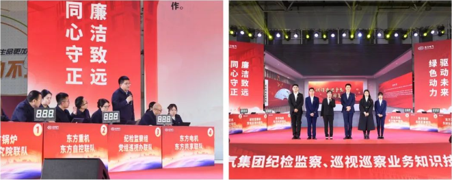 经过团体赛“自信自强、守正创新、勇毅前行”三个环节角逐,最终纪检监察组党组巡视办联队荣获一等奖,东方电机东方共享联队、东方重机东方自控联队荣获二等奖,东方锅炉东方研究院联队、东方汽轮机东树新材料联队、东方国际东方武核联队荣获三等奖。展馆讲解个人赛东方电机蒲颖荣获一等奖,东方自控王媛媛、东方锅炉王艺澎荣获二等奖,东方电机王艺蒙、德阳监督中心潘昊、东方物产李香杜荣获三等奖。