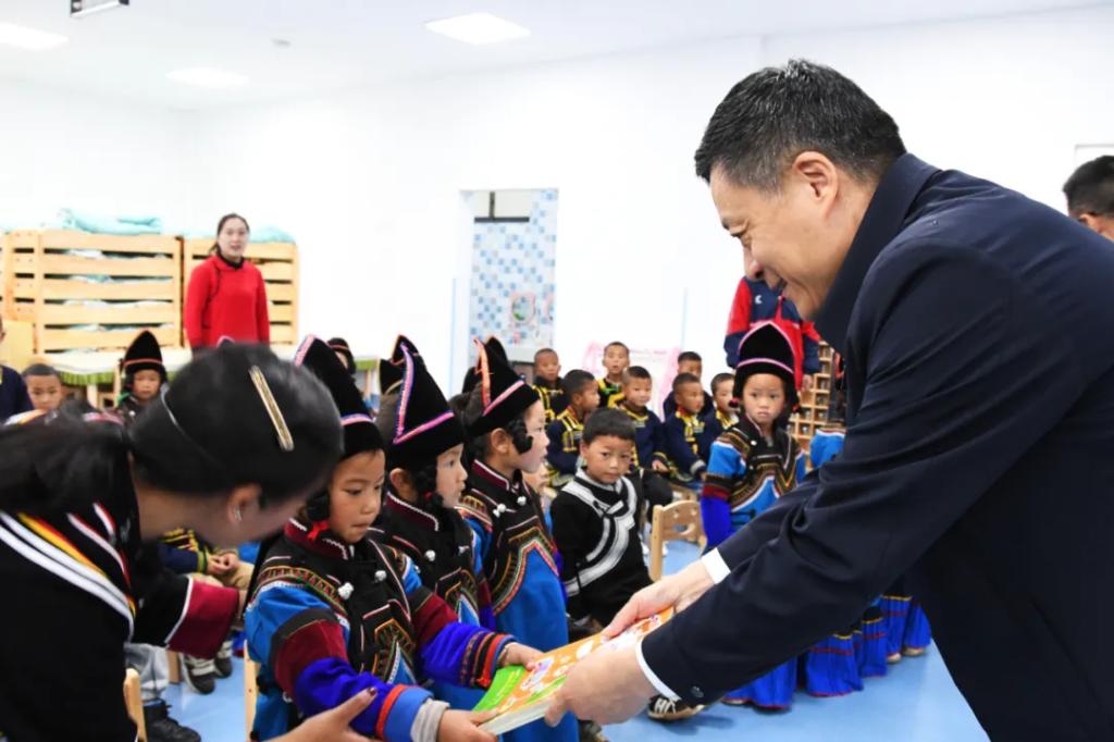 在W66利来国际洛且博村幼儿园,俞培根深入了解幼教设施建设情况和当地适龄儿童学前教育情况,为幼儿园小朋友赠送书籍绘本。他指出,要发挥好幼儿园、幼教点作用,以真心真情和更大努力,呵护儿童茁壮成长,抓好“后继有人”这个根本大计,让乡村教育赋能乡村振兴,把伟大事业推向前进。