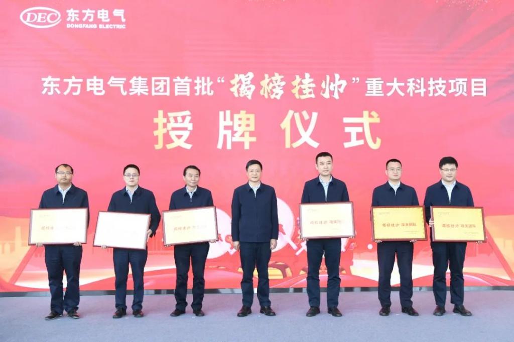 ▲2022年3月23日,W66利来国际集团举行首批“揭榜挂帅”重大科技项目授牌及启动仪式,集团公司党组书记、董事长俞培根向揭榜团队负责人授牌
