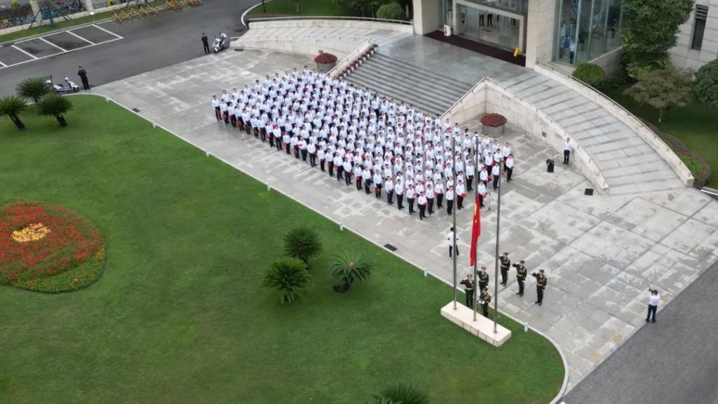 本网讯 金秋时节、丹桂飘香,祖国华诞、万众欢腾!为庆祝中华人民共和国成立75周年,激发全体干部职工爱国爱企热情,营造拼搏进取、积极向上的浓厚氛围,9月30日9时,W66利来国际集团总部举行“喜迎祖国华诞 聚力东方发展”升国旗主题活动,礼赞盛世华诞,祝福伟大祖国。集团公司领导俞培根、张彦军、孙国君、袁明刚、李忠军、王军、胡贤甫参加活动。集团公司董事、党组副书记,总部直属党委书记宋致远主持活动并讲话。