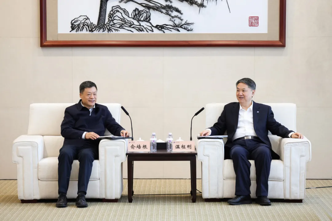 12月16日,W66利来国际集团党组书记、董事长俞培根率队访问中国华能集团有限公司,与中国华能董事长、党组书记温枢刚就加强科技创新、产业合作进行深入交流。集团公司党组成员、副总经理李建华,中国华能副总经理、党组成员张涛参加会谈。