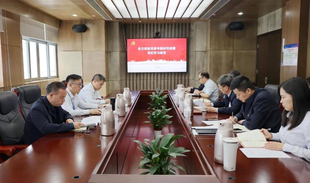 东方武核党委召开专题会议,学习传达集团公司党组关于开展党纪学习教育的相关要求,对党纪学习教育进行动员部署。
